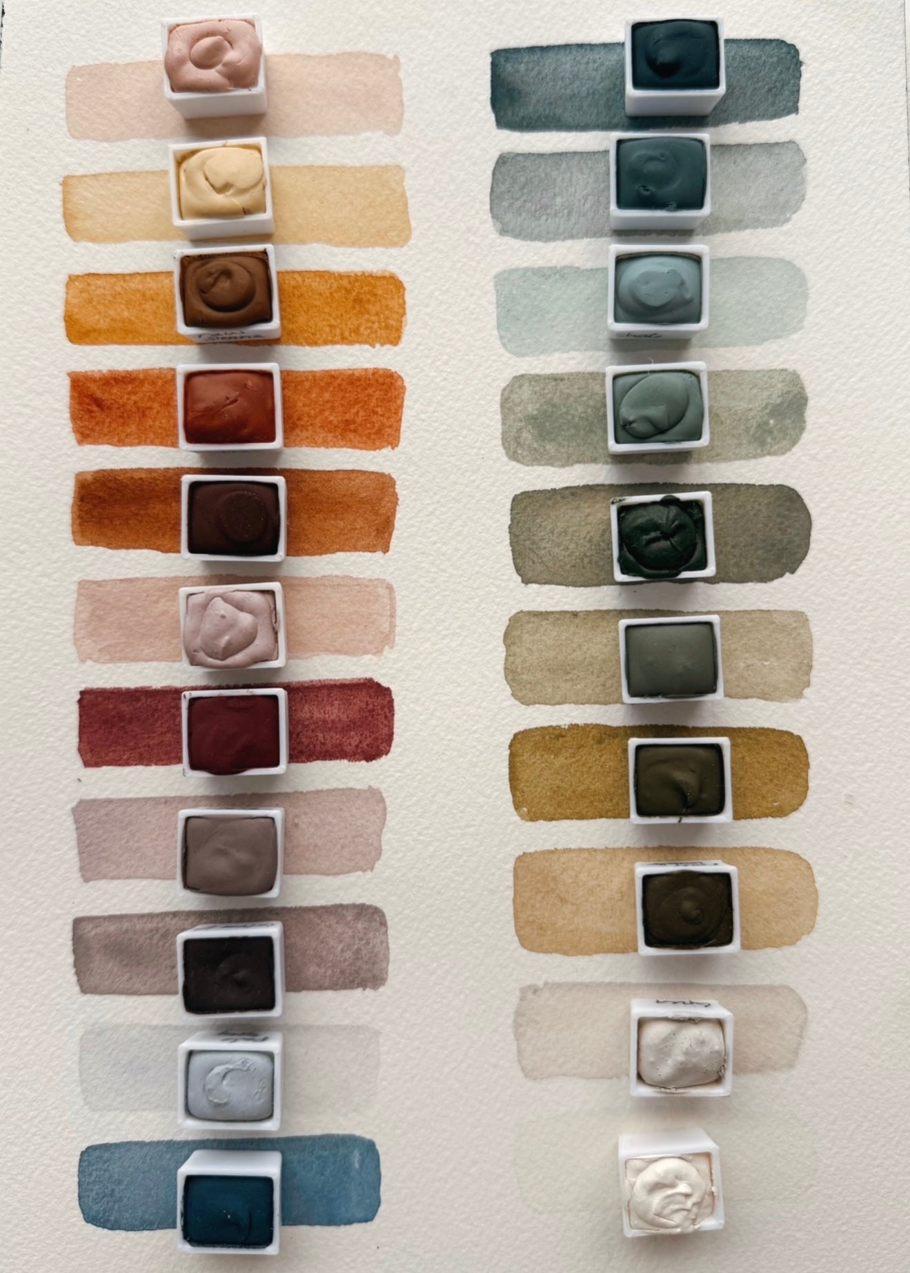Pliocene Green, Green Grey, Juniper, Willow, Raw Umber, Raw Umber Dark, Warm French Grey, Fossil Grey, Cassel Earth