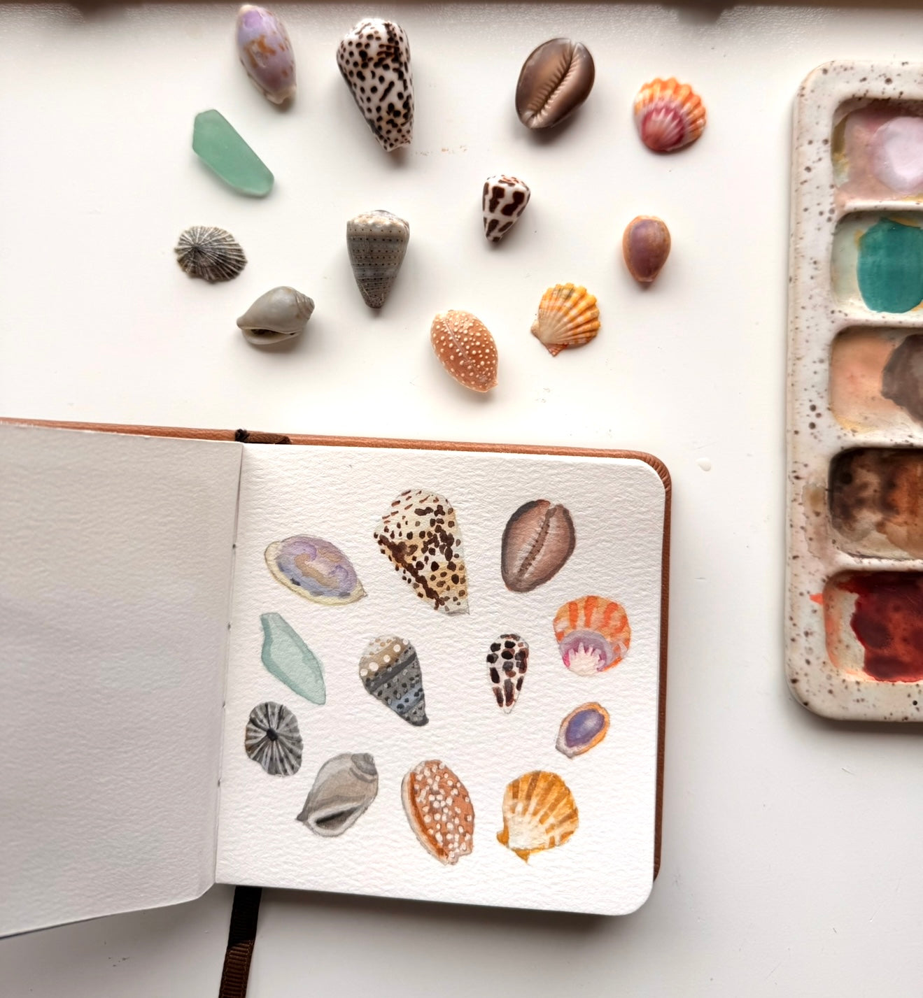 What: All art supplies (paint brushes, paper, pencils, paints, cups, palettes, ect) will be provided for use in class only. Bring your own shells for painting reference. I’ll also bring a selection if you don’t have your own.